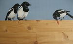 2013Bessen etende ekster met kapers op het hek